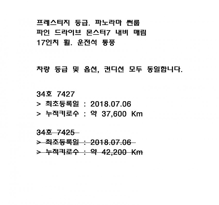 ▶ 최초등록일 및 누적거리 : 차량별 상이, 아래표 참고