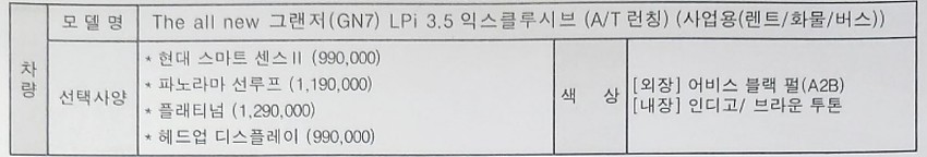 ▶ 차종 및 등급 : 현대 더 올 뉴 그랜저 3.5 LPI_익스클루시브