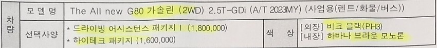 ▶ 차종 및 등급 : 현대 재네시스 G80_가솔린(2WD) 2.5T GDI (2023)