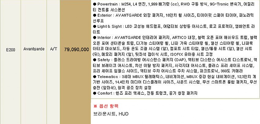 ▶ 차종 및 등급 : E200_아방가르드_26MY
