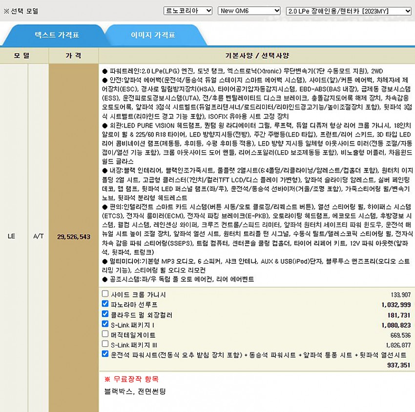 ▶ 차종 및 등급 : 르노코리아 New QM6 LPe 2WD LE_장애인용/렌터카 [2023MY]