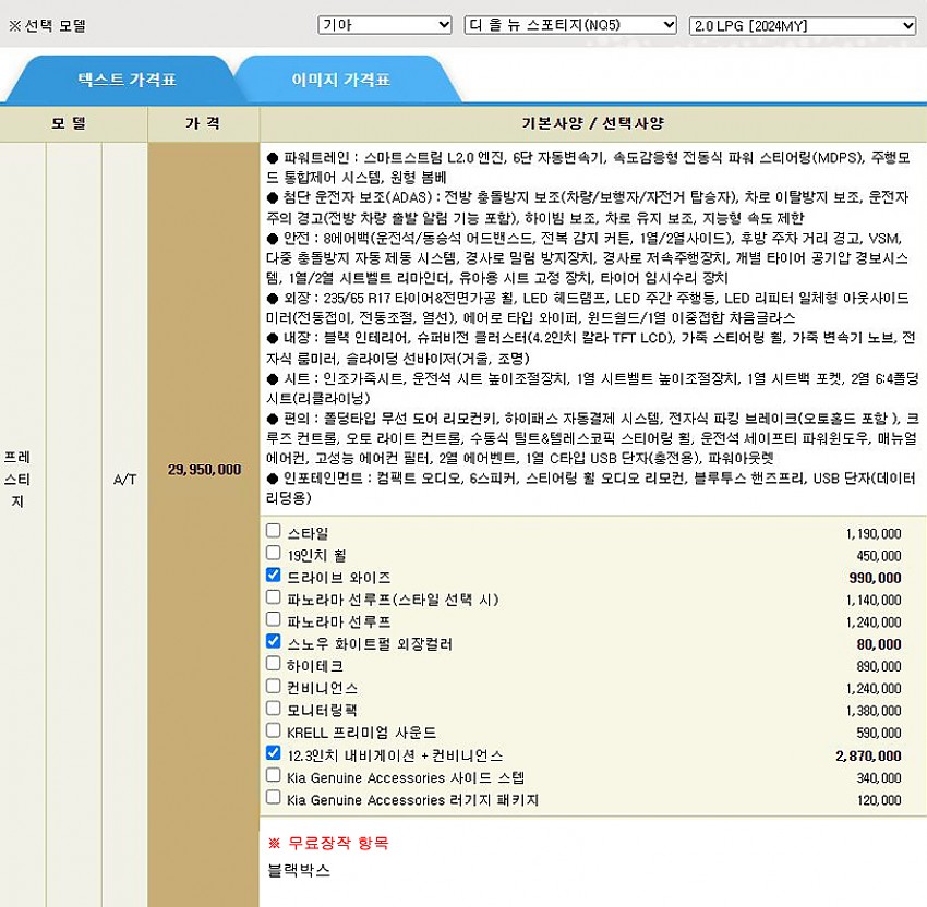 ▶ 차종 및 등급 : 디 올 뉴 스포티지 2.0 LPG 프레스티지 (A/T 2024 MY)