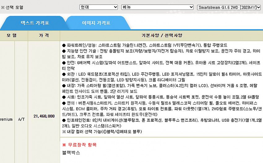 ▶ 차종 및 등급 : 현대 베뉴_가솔린 1.6 IVT 프리미엄 2WD 원톤
