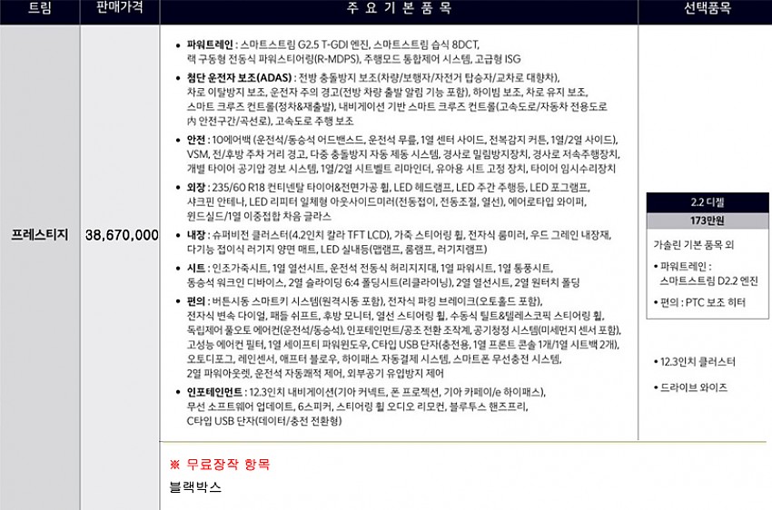 ※무상옵션 및 기본 장착 항목