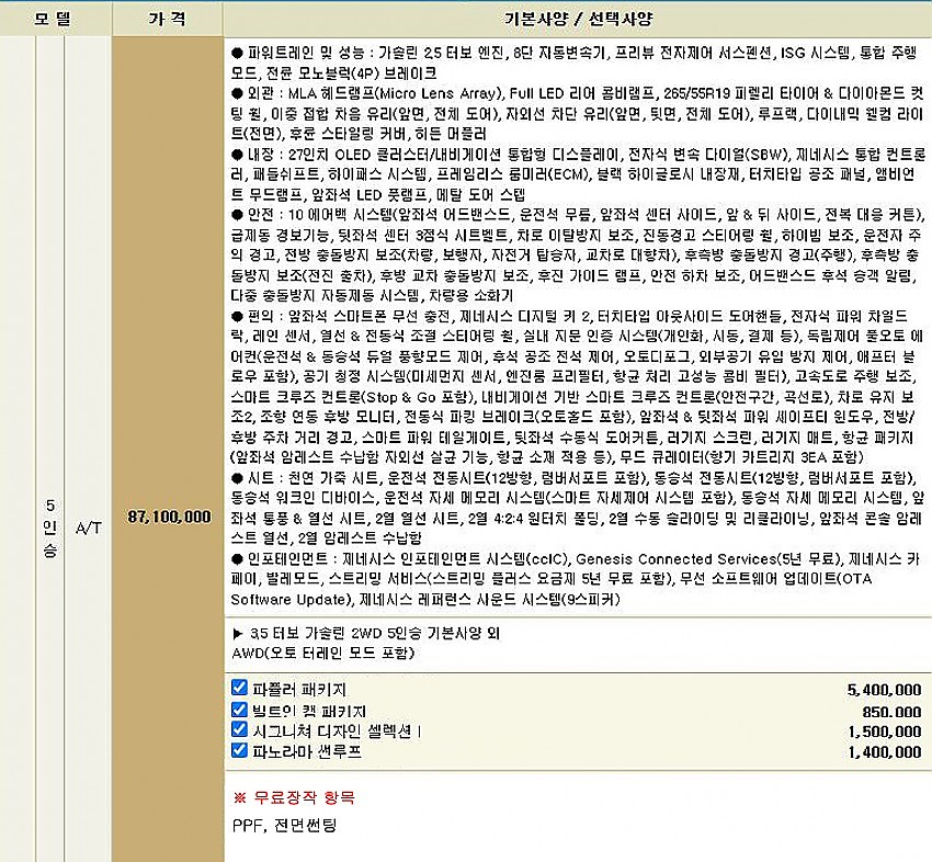 ▶ 차종 및 등급 : GV80 가솔린 3.5 터보_AWD_5인승_25MY