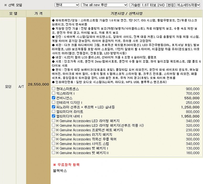 멀티미디어 내비 | + 컨비니언스 + 파노라마 선루프 / 블랙박스 (아래 옵션사항 참조)