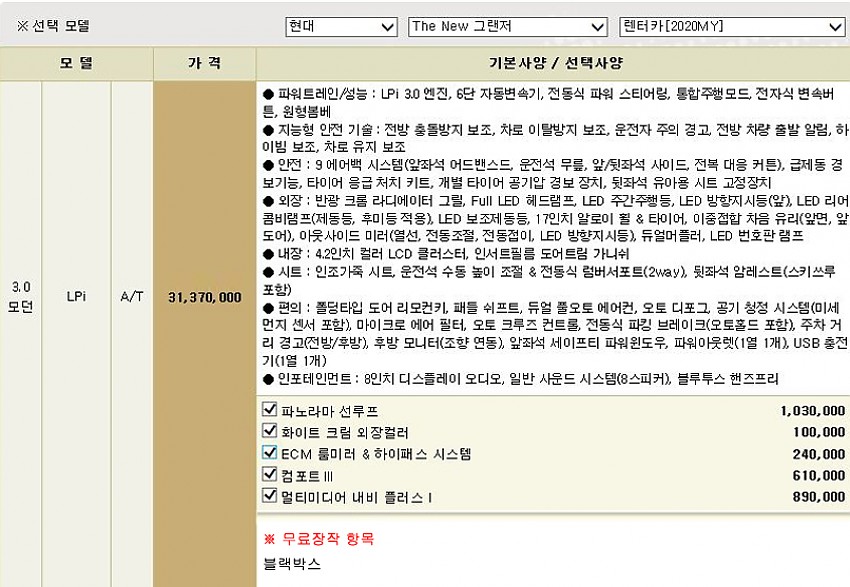 컴포트|||+멀티미디어 내비플러스+파노라마썬루프 / 블랙박스 등 (아래 옵션사항 참조)
