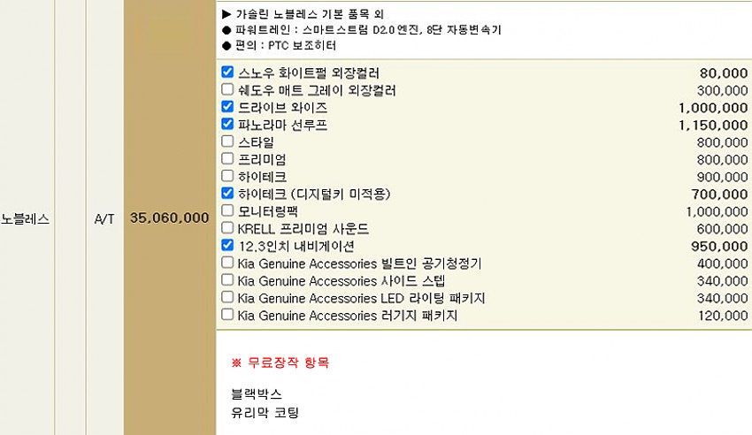 ※무상옵션 및 기본 장착 항목