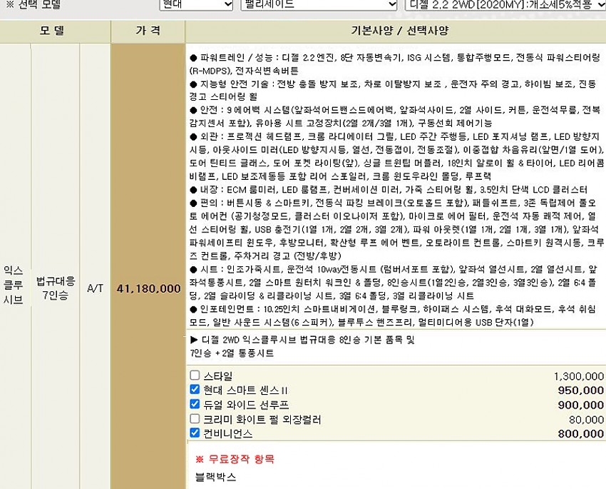 ▶ 차종 및 등급 : 현대 팰리세이드 2.2 디젤 2WD_7인승 / 익스클루시브