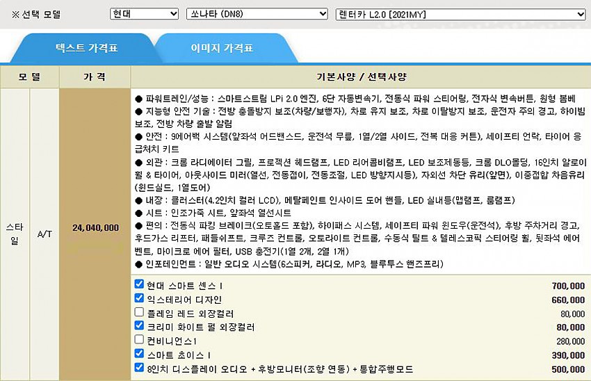 ▶ 차종 및 등급 : 쏘나타DN8 렌터카 LPi 2.0 스타일 오토 21MY