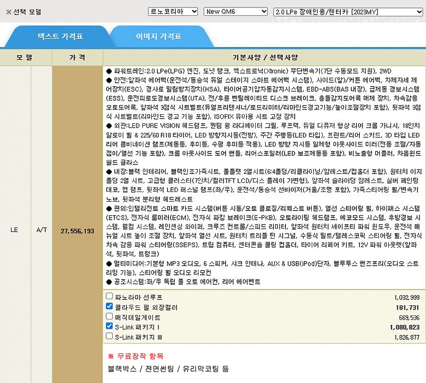 ▶ 차종 및 등급 : New QM6 / LE