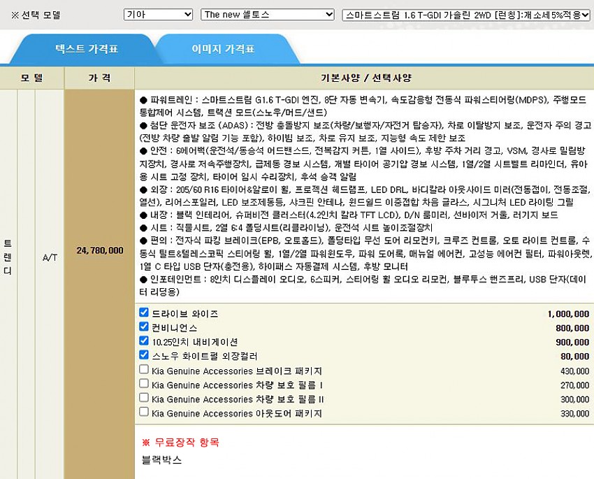 ※무상옵션 및 기본 장착 항목