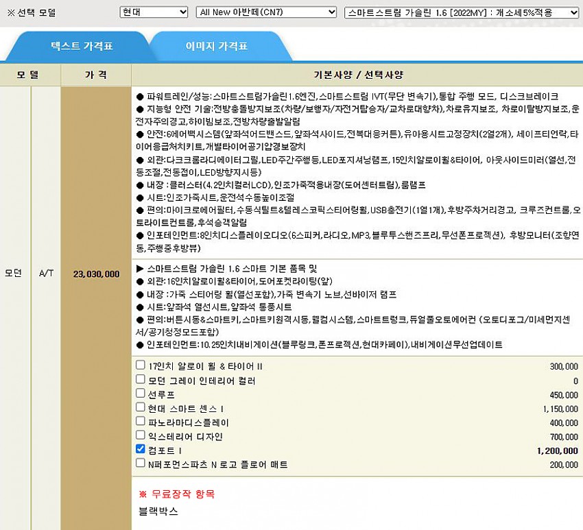 ▶ 차종 및 등급 : 현대 아반떼 CN7 가솔린 1.6_모던 22MY