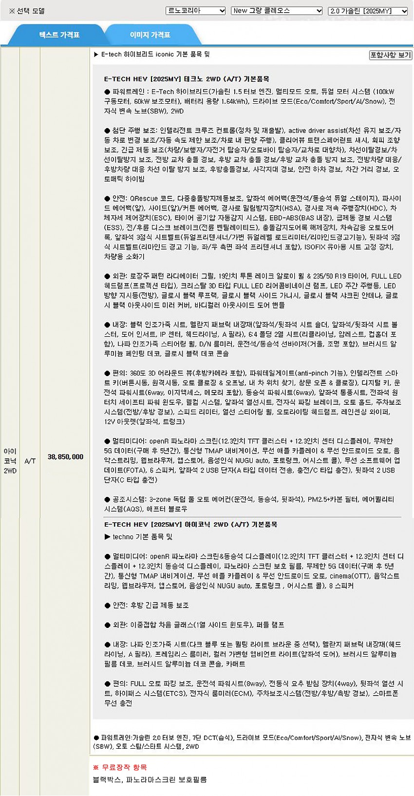 ▶ 차종 및 등급 : 그랑 콜레오스 가솔린 2.0 터보_아이코닉_25MY