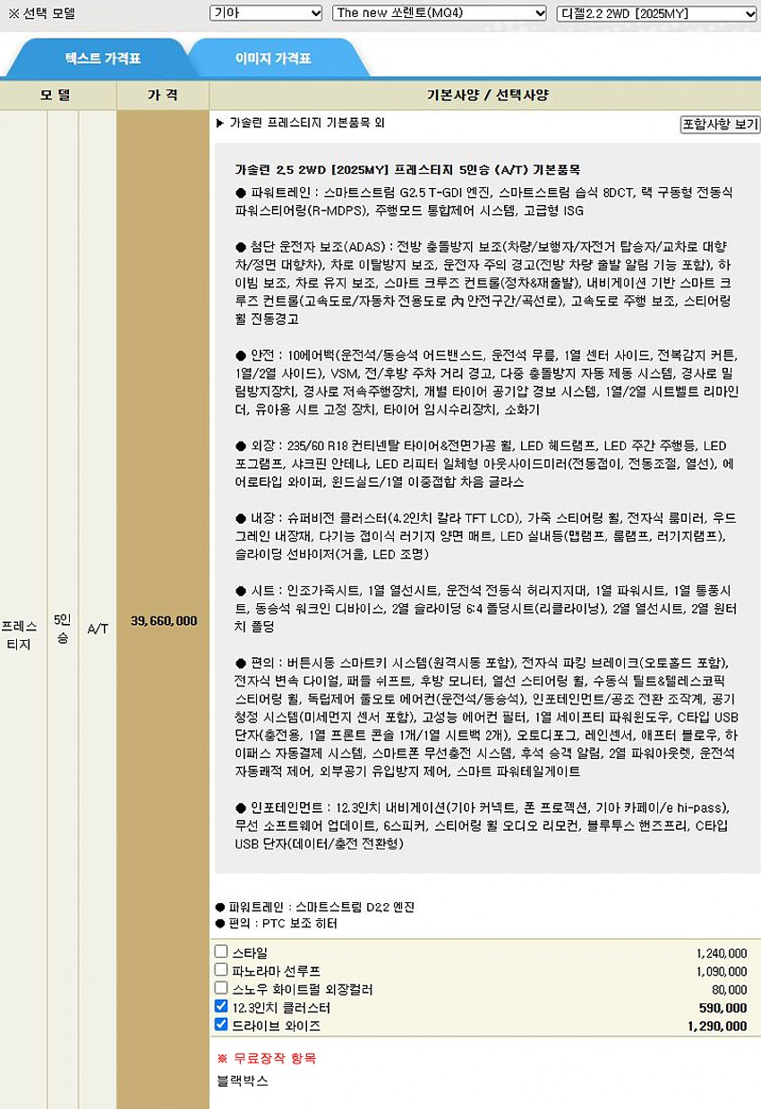 ▶ 차종 및 등급 : 더뉴 쏘렌토 디젤 2.2_2WD_프레스티지 5인승_25MY