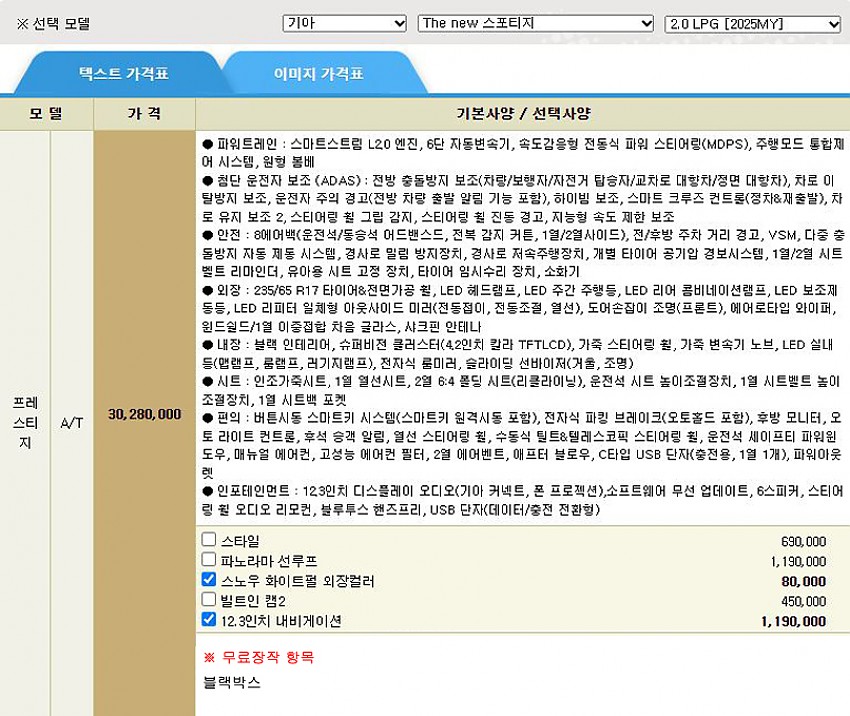 ▶ 차종 및 등급 : 더 뉴 스포티지 2.0 LPG_프레스티지_25MY