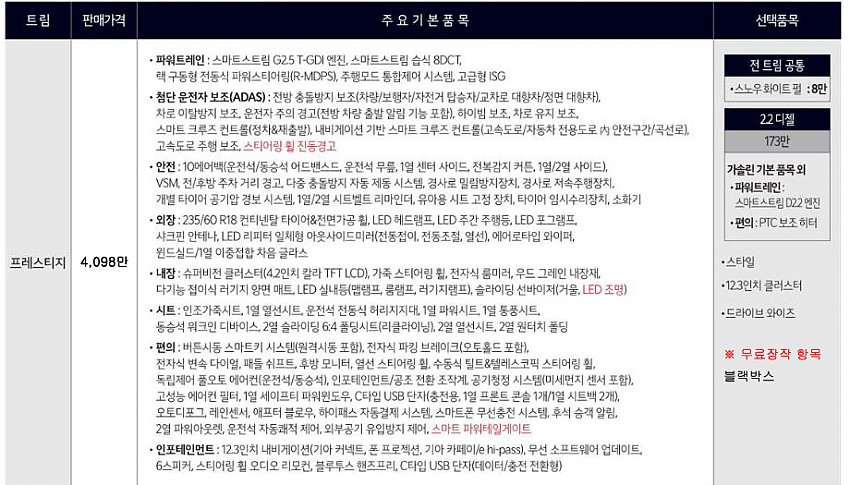 ▶ 차종 및 등급 : 더 뉴 쏘렌토 디젤 2.2_2WD_프레스티지 5인승_25MY