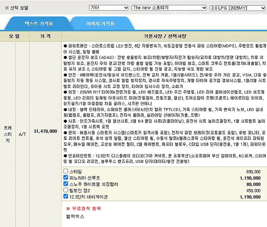 ▶ 차종 및 등급 : 더 뉴 스포티지 2.0_LPG_프레스티지_25MY