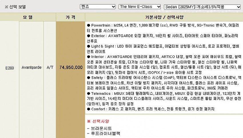 ▶ 차종 및 등급 : 더 뉴 E200_아방가르드_25MY