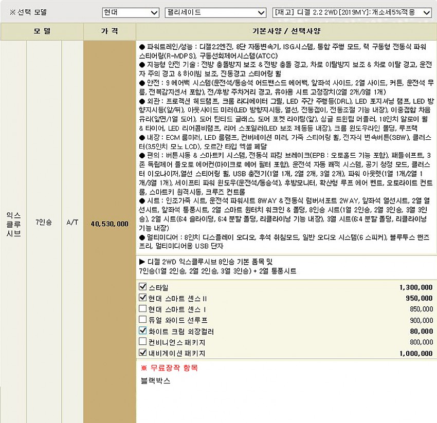 ▶ 차종 및 등급 : 현대 팰리세이드 2.2 디젤 2WD_7인승 / 익스클루시브