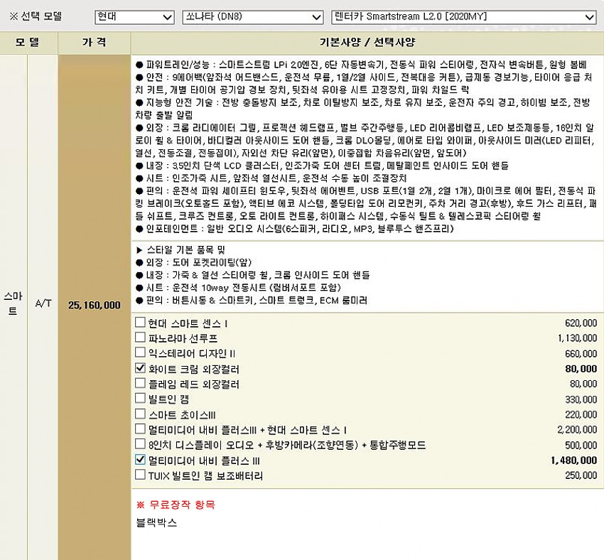 ▶ 차종 및 등급 : 현대 쏘나타 DN8 2.0 LPe / 스마트 트림