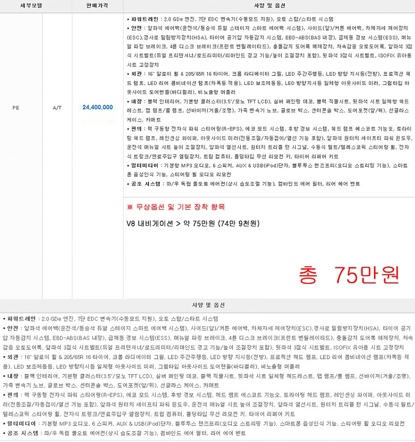 V8 내비게이션 ▶ 총 75만원