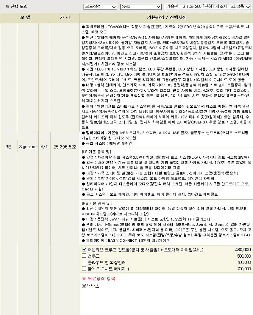▶ 차종 및 등급 : 르노삼성 XM3 TCe 260 / RE SIGNATURE [2020MY]