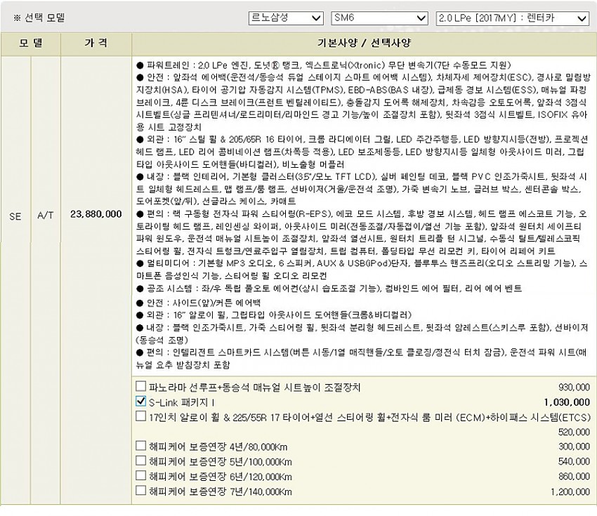 ▶ 차종 및 등급 : 르노삼성 SM6 / SE 등급
