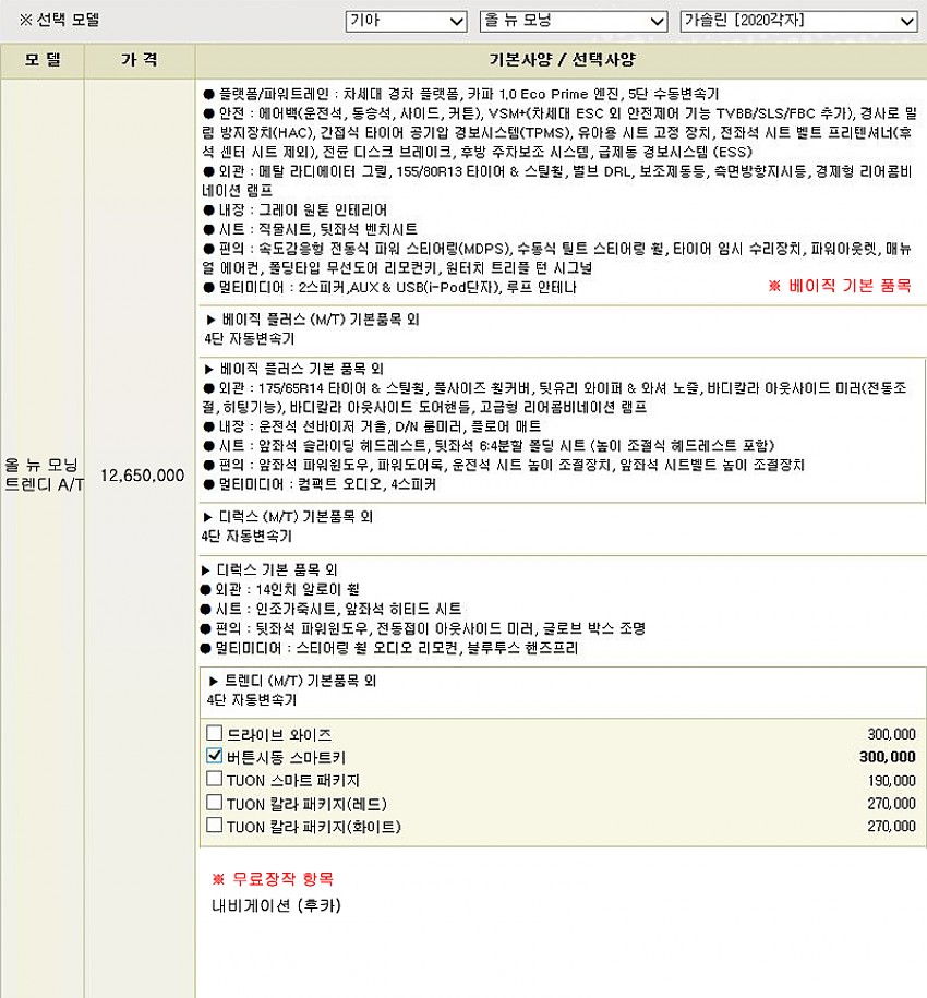 ※무상옵션 및 기본 장착 항목
