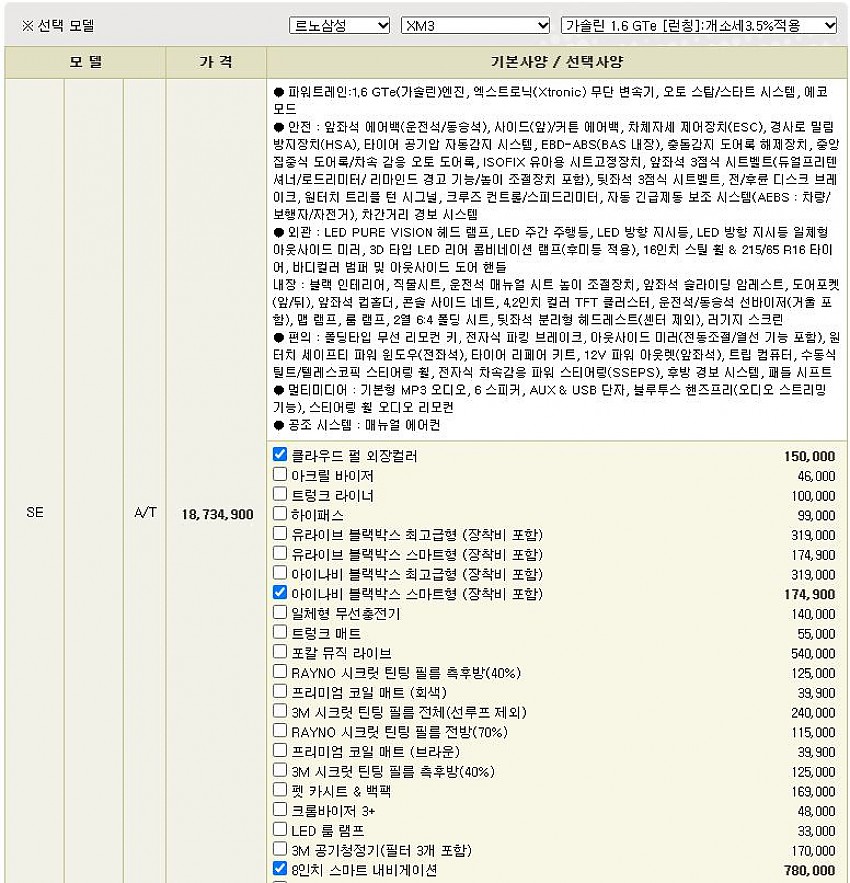 ▶ 차종 및 등급 : 르노삼성 XM3 1.6 GTe / SE [2020MY]