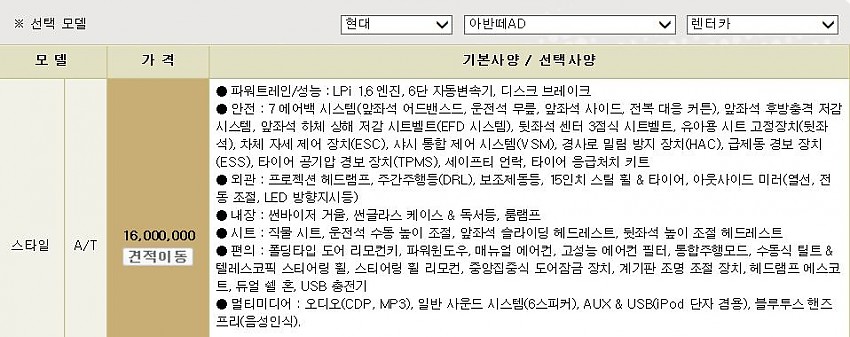 ▶ 차종 및 등급 : 현대 아반떼AD LPi / 스타일 등급
