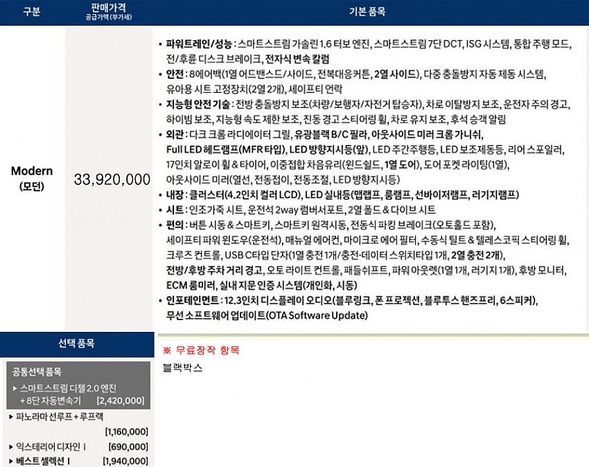 파노라마 썬루프 + 루프랙 등 / 블랙박스 (아래 옵션사항 참조)