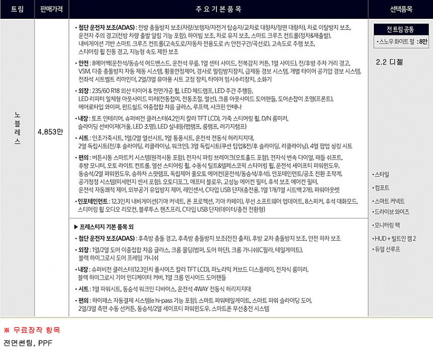 스타일, 컴포트 등 / 전면썬팅 + PPF (아래 옵션사항 참조)