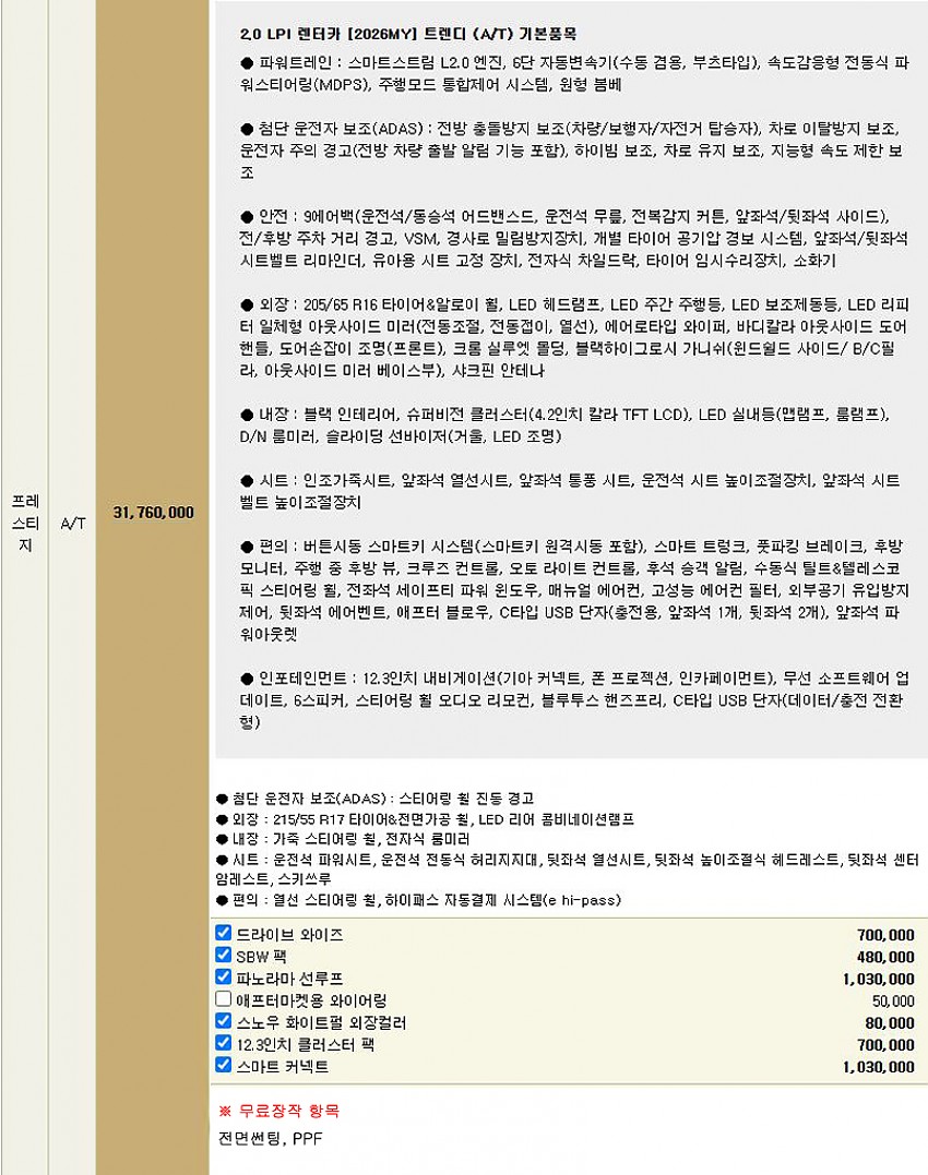 ▶ 차종 및 등급 : 더뉴 K5_2.0_LPI_렌터카_프레스티지_26MY