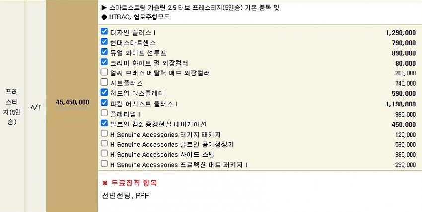 스마트센스 + 헤드업 디스플레이 등 / 전면썬팅 (아래 옵션사항 참조)