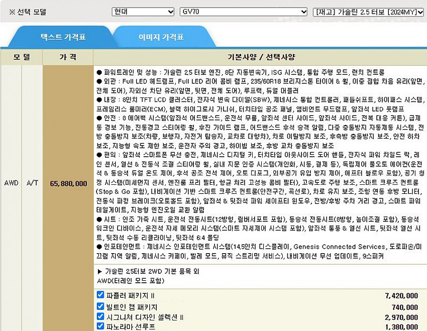 ▶ 차종 및 등급 : GV70 24MY 가솔린_2.5T AWD