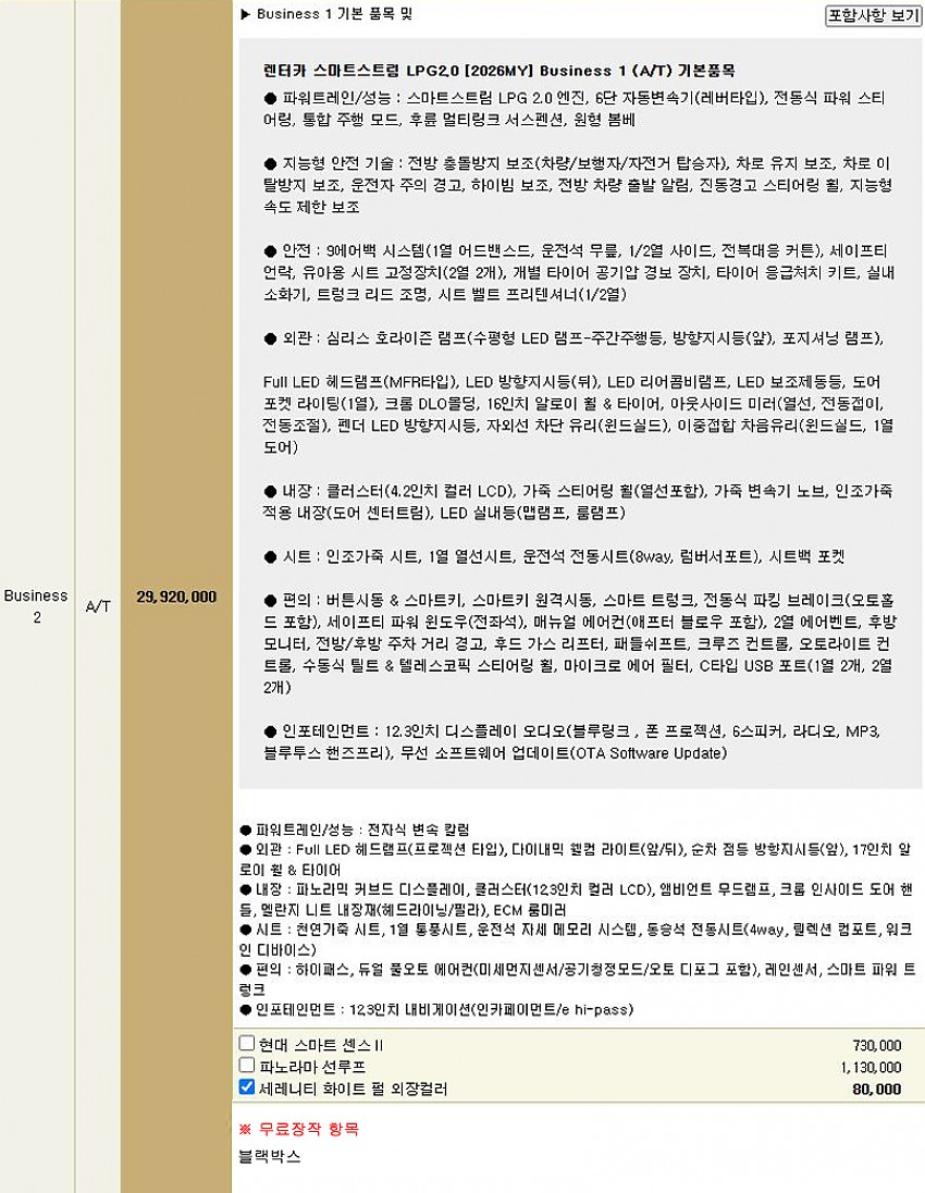 ▶ 차종 및 등급 : 쏘나타DN8 렌터카 LPi 2.0 비지니스2_26MY