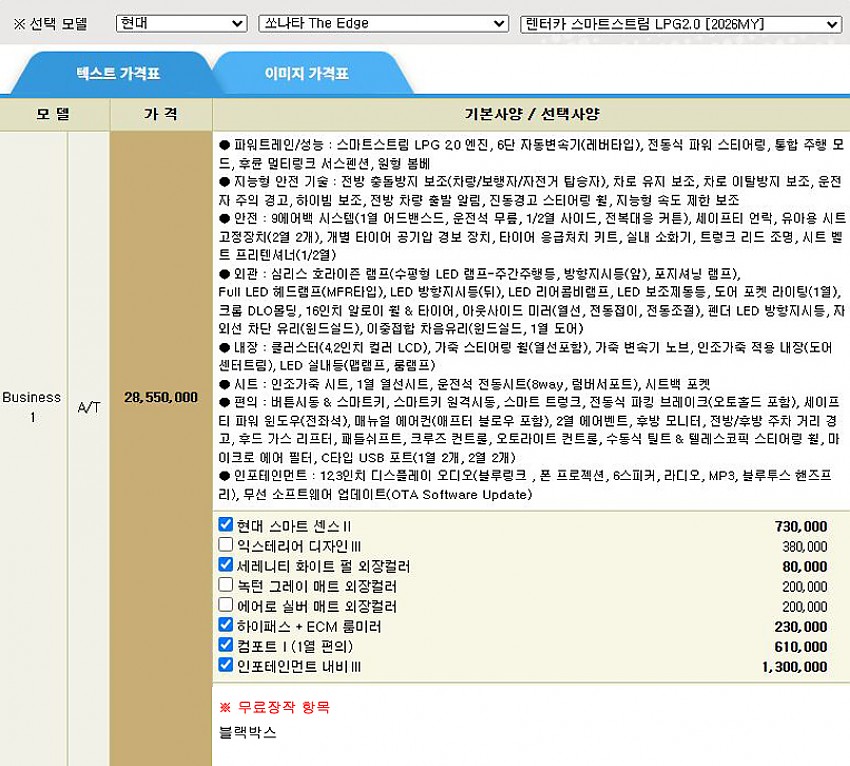 ▶ 차종 및 등급 : 쏘나타DN8 렌터카 LPi 2.0 비지니스1_26MY