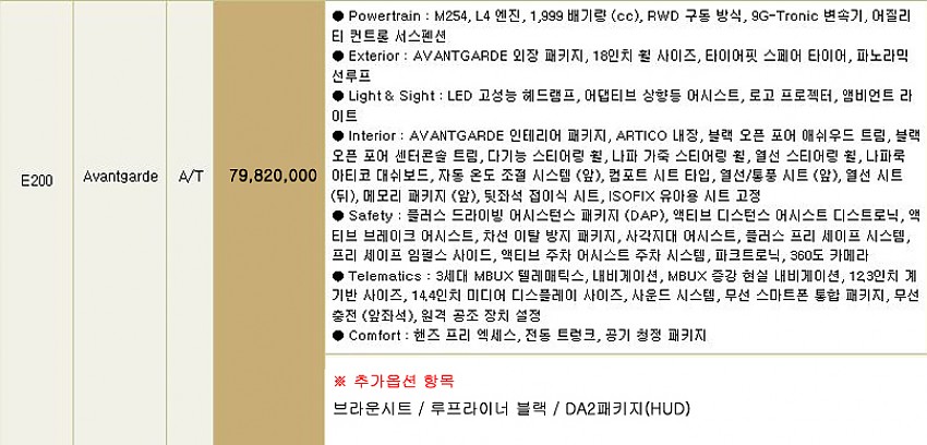 ▶ 차종 및 등급 : 더 뉴 E200_아방가르드_26MY