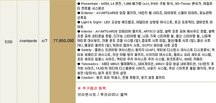 ▶ 차종 및 등급 : 더 뉴 E200_아방가르드_26MY