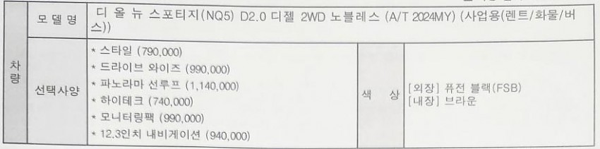 ▶ 차종 및 등급 : 디 올 뉴 스포티지 2.0 디젤 2WD 노블레스