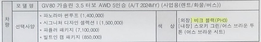 ▶ 차종 및 등급 : GV80 가솔린 3.5 터보_AWD 5인승(2024MY)