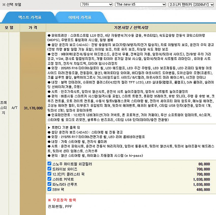 ▶ 차종 및 등급 : 더뉴 K5_2.0 LPi 렌터카_프레스티지_24MY
