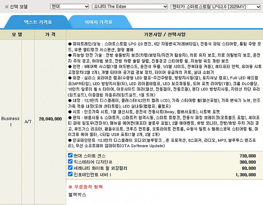 ▶ 차종 및 등급 : 쏘나타DN8 렌터카 LPi 2.0 비지니스1_25MY