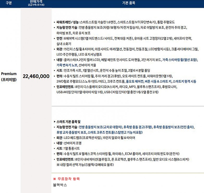 ※무상옵션 및 기본 장착 항목