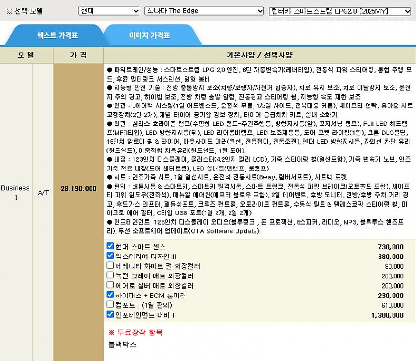 인포테인먼트 내비1 + 현대 스마트 센스 등 / 블랙박스 (아래 옵션사항 참조)