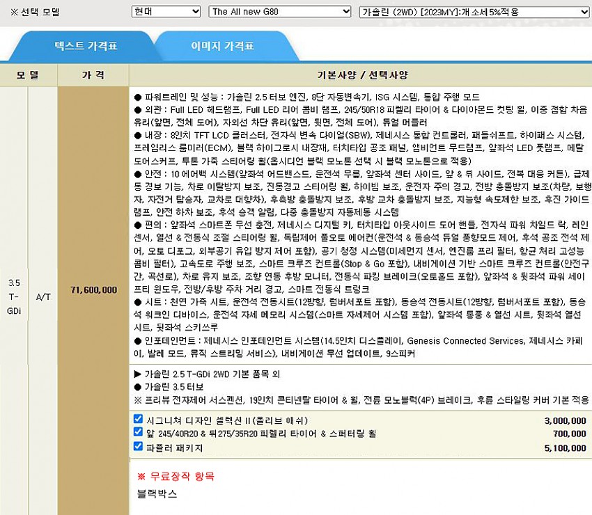 ▶ 차종 및 등급 : G80 가솔린 (2WD) 3.5T-GDI (A/T 2023MY)