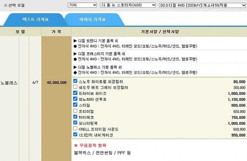 ▶ 차종 및 등급 : 기아 디 올 뉴 스포티지 2.0 디젤 4WD_노블레스 [ 2023MY ]