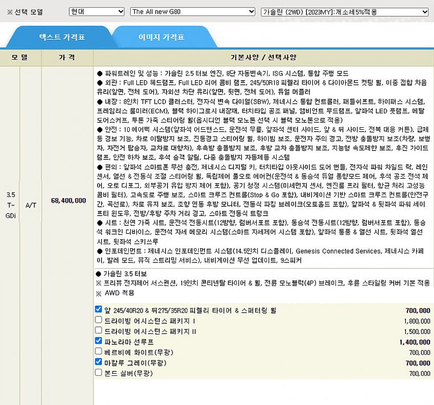▶ 차종 및 등급 : 더 올 뉴 G80 가솔린 (AWD) 3.5T-GDi (A/T 2023MY)