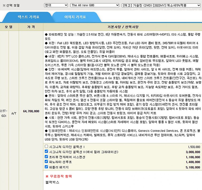 ▶ 차종 및 등급 : G80 가솔린 (2WD) 2.5T-GDI (A/T 2022MY)
